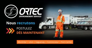 Ortec Environnement Services est à la recherche d’Opérateurs-Chauffeurs Classe 3 pour les régions de Lévis, Matane, Port-Cartier, Alma et Jonquière